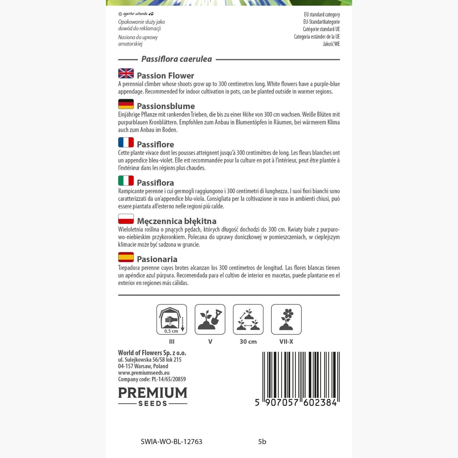 Für eine erfolgreiche Kultur empfiehlt sich die Aussaat ab März geschützt auf der Fensterbank oder im beheizten Gewächshaus bei konstanten 20°C. Die Samen werden 0,5 cm tief in lockere Aussaaterde gelegt und leicht bedeckt, um optimale Keimbedingungen zu schaffen. Nach etwa 2-3 Wochen zeigen sich die ersten Keimlinge, die nach ausreichender Entwicklung pikiert werden können. Das Umpflanzen ins Freie erfolgt ab Mai, sobald keine Nachtfröste mehr zu erwarten sind und der Boden gut erwärmt ist – so wird das Wachstum nachhaltig gefördert. Ein Pflanzabstand von mindestens 30 cm sorgt für ausreichend Luftzirkulation zwischen den Pflanzen und beugt Pilzkrankheiten vor. Als Standort bevorzugt Passiflora caerulea helle Plätze ohne direkte Mittagssonne sowie einen durchlässigen, nährstoffreichen Boden mit gleichmäßiger Feuchtigkeit ohne Staunässe.
