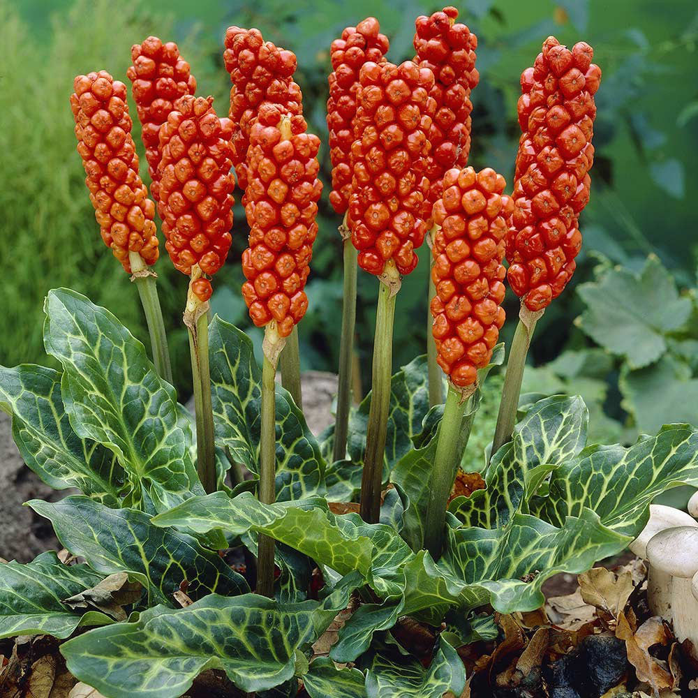 Italienischer Aronstab - Arum - Rote Früchte und Dekorative Blätter - 5 Blumenzwiebeln