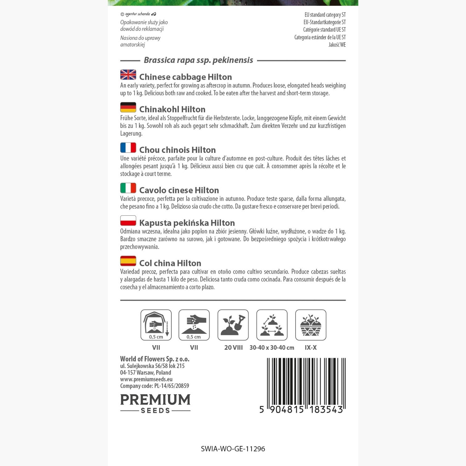 Die Erntezeit beginnt je nach Aussaattermin ab September und erstreckt sich bis Oktober, wenn die Köpfe fest geschlossen sind und ihr volles Aroma entfalten. Chinakohl Hilton eignet sich bestens zum direkten Verzehr: Roh bereichert er Salate durch seine knackige Struktur und den milden Geschmack, gegart bleibt er angenehm zart ohne Bitterstoffe zu entwickeln - ideal für Pfannengerichte oder asiatische Rezepte wie Wok-Gemüse oder Suppenklassiker aus regionaler Küche. Auch zur kurzfristigen Lagerung ist diese Sorte geeignet: Im kühlen Keller bleiben frisch geerntete Köpfe mehrere Wochen haltbar ohne an Qualität zu verlieren. Neben dem kulinarischen Wert überzeugt Chinakohl Hilton durch sein dekoratives Erscheinungsbild im Gemüsegarten - das leuchtend grüne Laub setzt frische Akzente zwischen anderen Herbstkulturen.