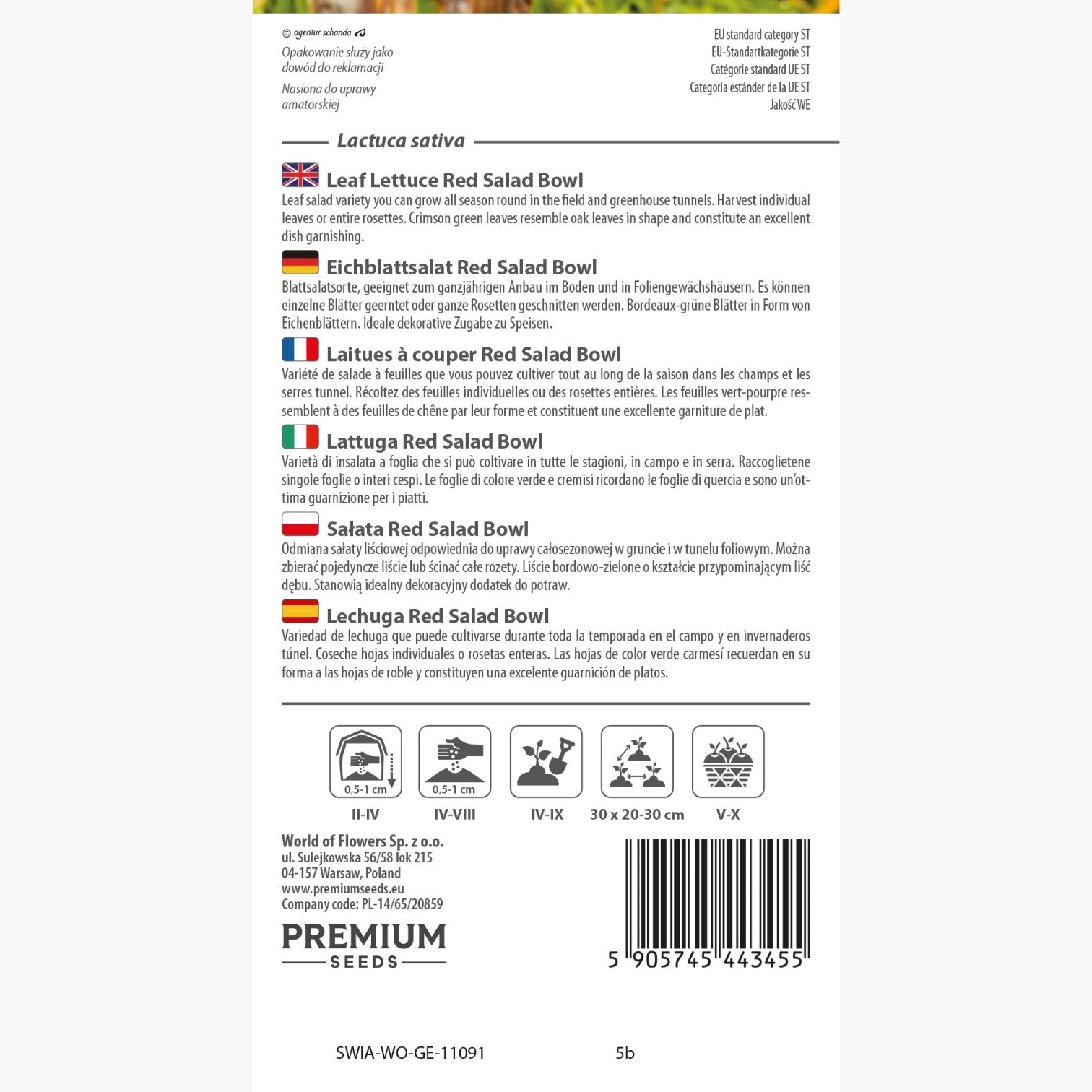 Die Samen sollten 0,5 bis 1 cm tief in die Erde gesetzt werden. Von Mai bis Oktober können Sie dann die knackigen, frischen Blätter ernten. Ob Sie einzelne Blätter pflücken oder ganze Rosetten schneiden – der Eichblattsalat Red Salad Bowl bietet Ihnen eine reiche Ernte an schmackhaftem und gesundem Salat.