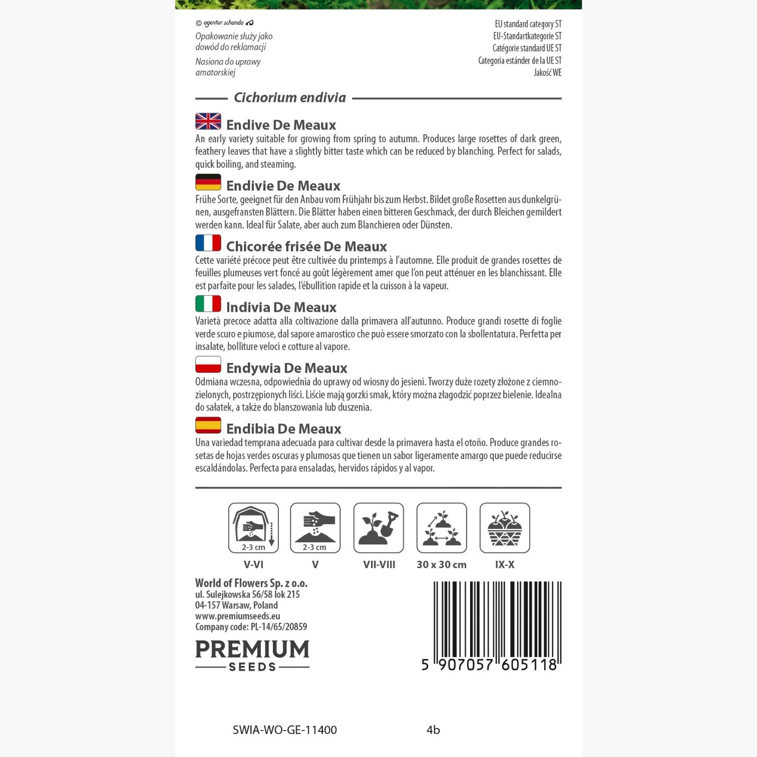 Die Endivie De Meaux überzeugt als bewährte, frühreifende Sorte mit ausgeprägter Anpassungsfähigkeit an unterschiedliche Anbaubedingungen. Charakteristisch sind die großen, kräftigen Rosetten aus dunkelgrünen, stark ausgefransten Blättern, die dem Beet einen markanten Anblick verleihen. Diese Züchtung ist besonders für den Anbau von Frühjahr bis Herbst geeignet und zeichnet sich durch eine gleichmäßige Entwicklung sowie hohe Ertragssicherheit aus. Die Blätter besitzen einen typisch bitteren Geschmack, der durch gezieltes Bleichen deutlich gemildert werden kann. Dank ihrer Robustheit und Widerstandsfähigkeit gegenüber wechselnden Witterungsverhältnissen gilt diese Kulturpflanze als zuverlässige Wahl im deutschen Haus- und Kleingartenbau.