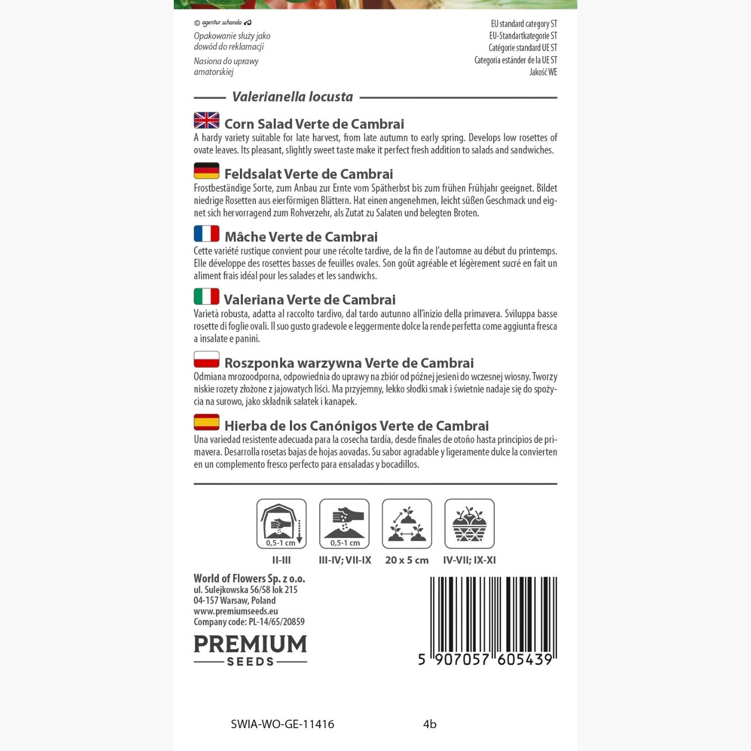 Der praktische Nutzen dieser Sorte zeigt sich vor allem beim Frischverzehr: Von April bis Juli sowie wieder ab September bis November lassen sich knackige Blätter ernten, die besonders aromatisch sind und einen angenehmen Biss bieten. Feldsalat Verte de Cambrai eignet sich ideal als Grundlage für gemischte Salate oder als dekorative Beilage auf belegten Broten – sein nussiges Aroma harmoniert bestens mit milden Dressings oder fein gehobeltem Gemüse wie Radieschen oder Gurken. Auch als Vitaminspender im Winter ist diese Kulturpflanze sehr gefragt: Ihr hoher Gehalt an Folsäure, Eisen und Kalium macht sie zu einem wertvollen Bestandteil ausgewogener Ernährung während der kühleren Jahreszeit.