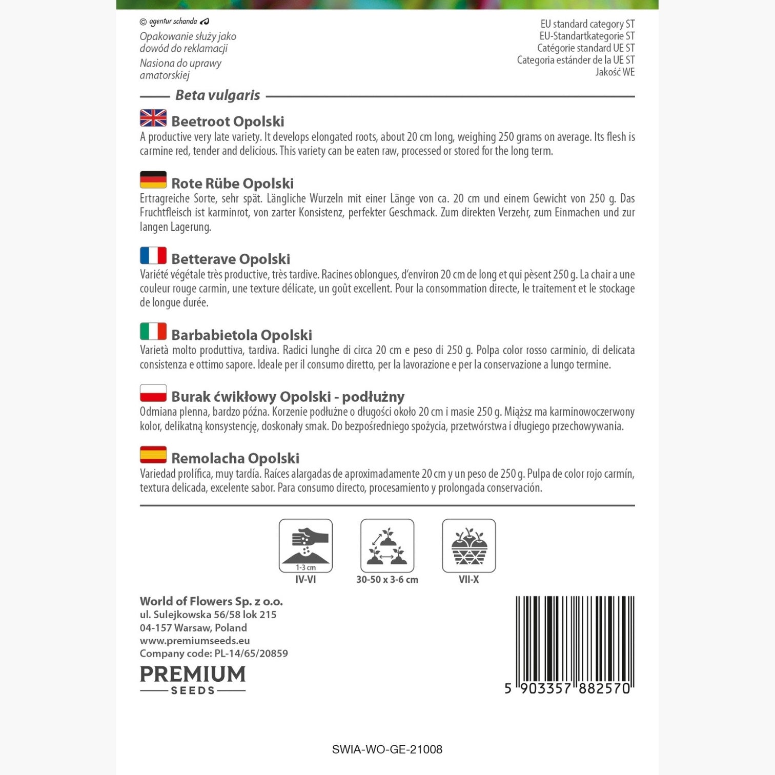Questa varietà di barbabietola Opolski si è dimostrata regolare nella germinazione e costante nella crescita, con radici allungate dal colore intenso e dal gusto equilibrato. La raccolta è risultata soddisfacente e le barbabietole si conservano bene, mantenendo consistenza e dolcezza anche dopo settimane. È un prodotto affidabile per chi cerca una coltivazione stabile e una resa apprezzabile, adatta sia all’uso fresco che a quello prolungato in dispensa.