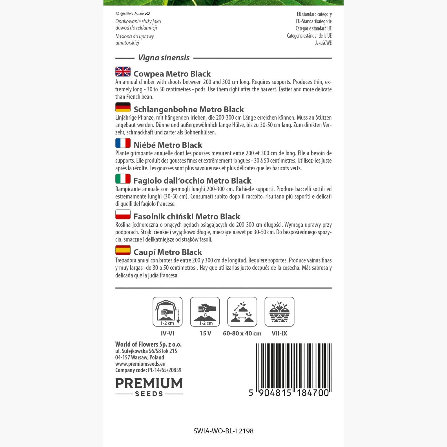 Schlangenbohne Metro Black - Lange, faserfreie Hülsen, ideal für asiatische Gerichte und als Kletterpflanze - Vigna sinensis