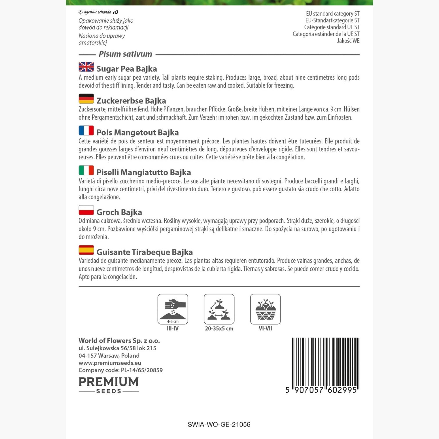 Zuckererbse Bajka - Schnelles Wachstum, Hoher Ertrag