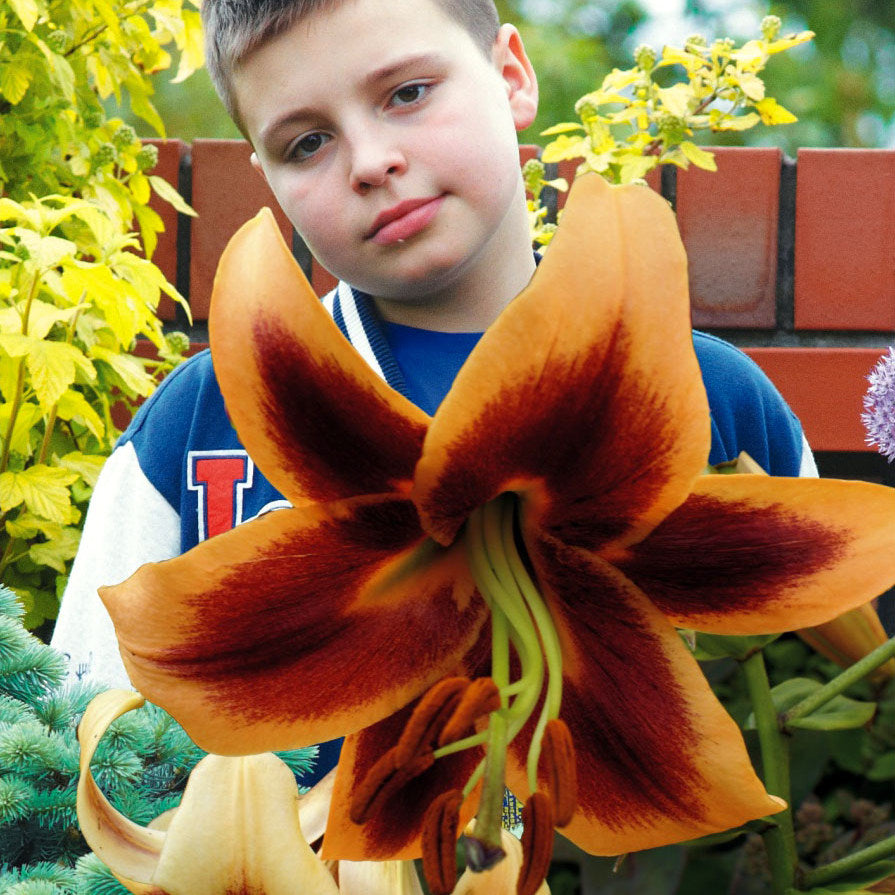 Mit ihrem warmen, kupferorangefarbenen Schimmer erhebt sich die Baum-Lilie Red Morning als majestätisches Glanzstück in sommerlichen Pflanzungen. Ihre aufrechte Silhouette und die großzügig dimensionierten Blüten entfalten in sonnendurchfluteten Beeten eine fast skulpturale Wirkung. Durch das kräftige, langlebige Wachstum und ihre ausgeprägte Robustheit erweist sich diese Sorte als verlässlicher Akzentträger, der sowohl solitär als auch in vielfältigen Kombinationen mit anderen ausdauernden Gartenpflanzen eindrucksvoll zur Geltung kommt. Im Zusammenspiel mit strukturstarken Stauden, filigranen Gräsern oder kontrastierenden Blütenfarben entsteht ein harmonisch abgestimmtes Gesamtbild.