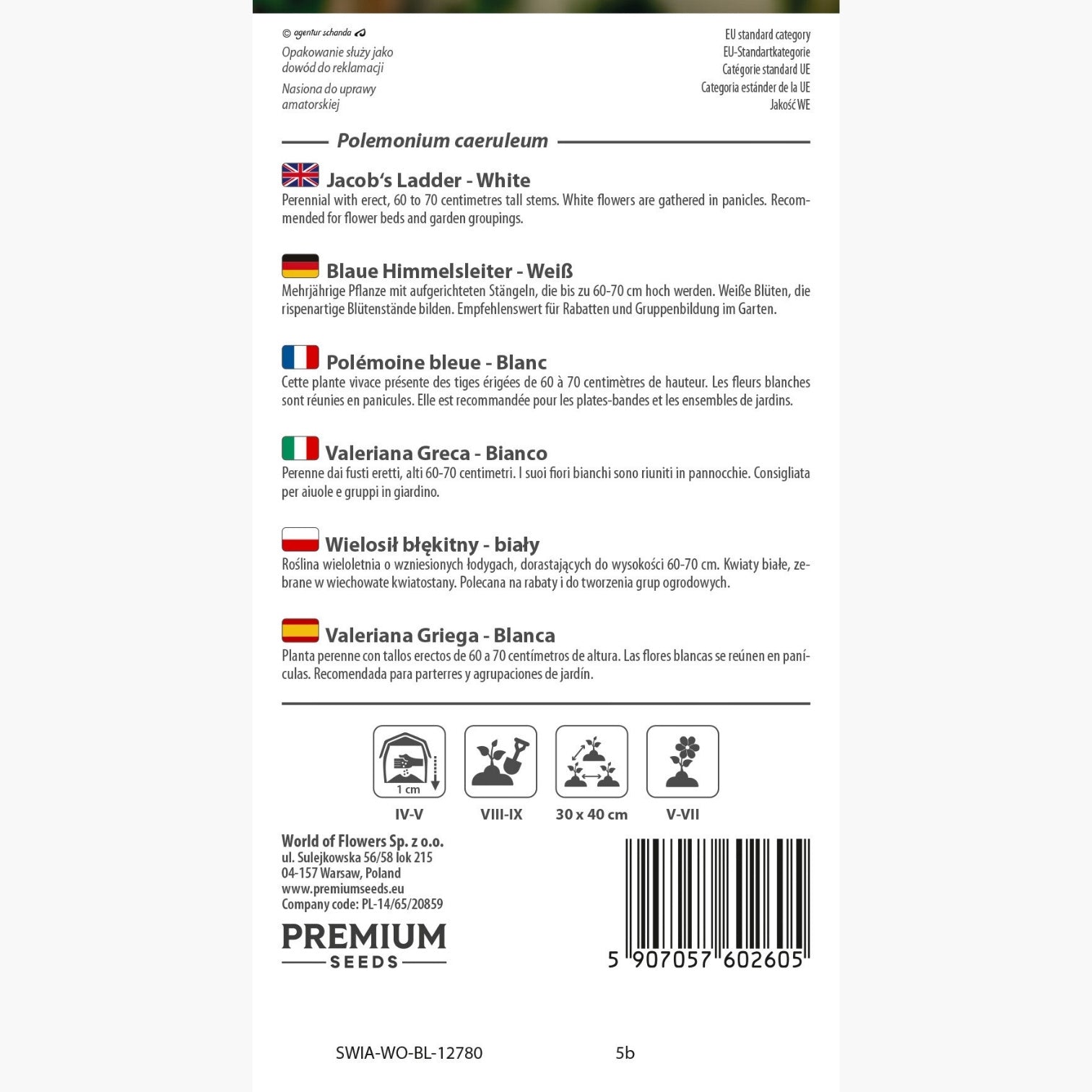 Blaue Himmelsleiter - Weiß - Natürliche Romantische Gartendekoration - Polemonium caeruleum