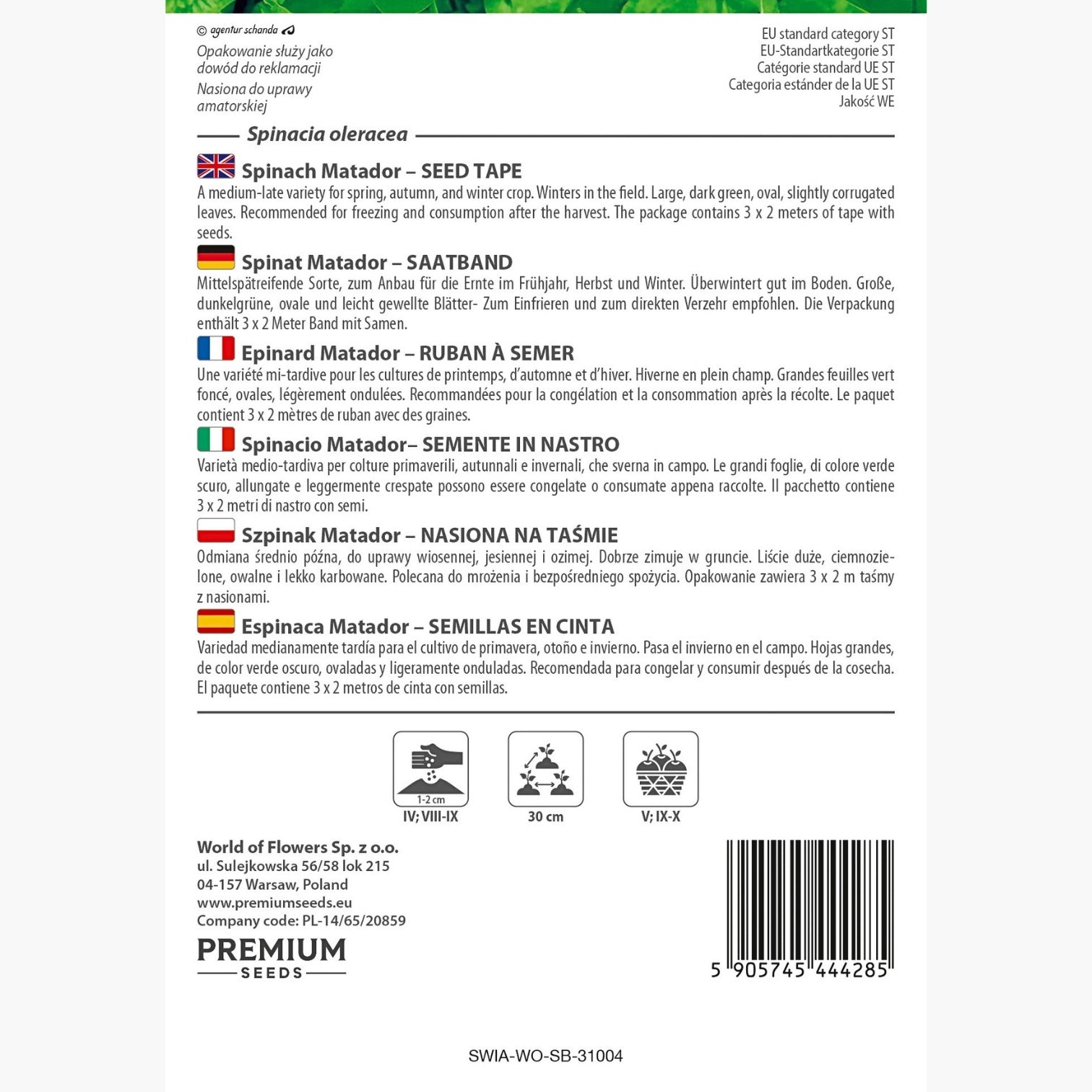 Spinat Matador - Saatband - Ohne Bitterstoffe, Perfekt Zum Einfrieren
