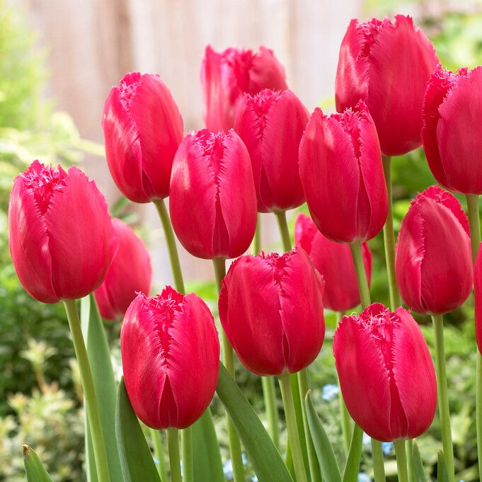 Im frühen Frühjahr setzt die Tulpe "Burgundy Lace" unverwechselbare Akzente im Garten, wenn ihre intensiv rosaroten, zart duftenden Blüten mit feiner Fransung entlang der Blütenränder über dem frischen Grün des Laubs erscheinen. Der harmonische Farbverlauf vom kräftigen Blütengrund bis zu den filigranen Spitzen verleiht ihr eine besondere Tiefe und Lebendigkeit. Eingebettet in Beeten oder als stilvolle Bepflanzung entlang von Wegen bringt sie eine elegante Geschlossenheit in unterschiedlich gestaltete Gartenräume und fügt sich sowohl in moderne als auch in klassische Gestaltungsformen mühelos ein.